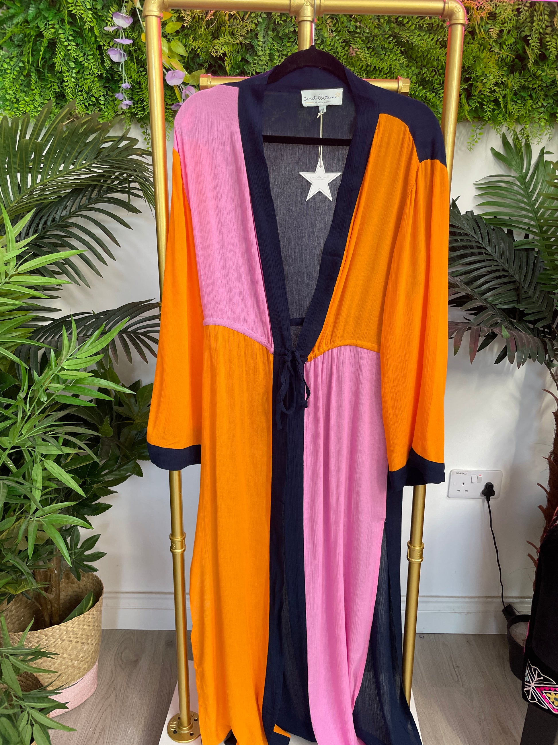 Stunning Kimono in Pink, Orange and Blue. These are brand new and still in there original packaging.. Get yourself a bargain for your summer holiday at just £5.00 you can't go wrong.